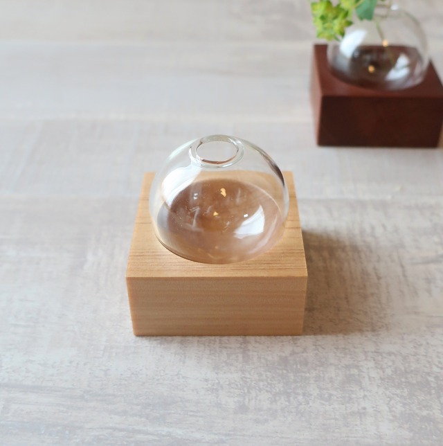 【お庭やお散歩で見つけた野の花など ちょこっとお花を飾るのにオススメ】 広葉樹が原料の天然木材の温かみと コロンとしたガラスボールが可愛い 手のひらサイズのフラワーベースです。 小さめサイズ&安定感ある台座で サイドテーブルや棚の上、ちょこっとしたスペースに最適です。 【素材・成分】 アルダー材(ラッカー塗装仕上げ)、ガラス 【生産地】 日本 【サイズ】 W6.3㎝ × H6.5㎝(ガラスを設置した高さ) ガラス口径1.2㎝ ◆ラッピングについて◆ 無料簡易ラッピング ご希望の場合はメッセージカード付き。 ※オリジナルメッセージの場合は、カード作成いたします。 備考欄にご記入ください。 ◆配送について◆ ・「ゆうパック 60サイズ」 日時指定、追跡、保障あり ・時間指定は下記からお選びください。 午前中/12~14時/14~16時/16~18時/18~20時/19~21時 ※関東の一部地域では14時以降が最短到着時間になる場合がございます。 「当店郵便番号 510-0254」 ↓日本郵便お届け予定日検索ページ https://www.post.japanpost.jp/send/deli_days/index.html ※他の商品と一緒にご購入の場合は、 送料が高い方の配送料金が適用されます。