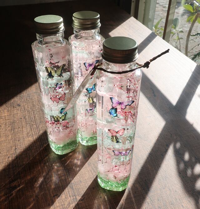 なるべく立体感が出るように、面の多い瓶で製作しています。