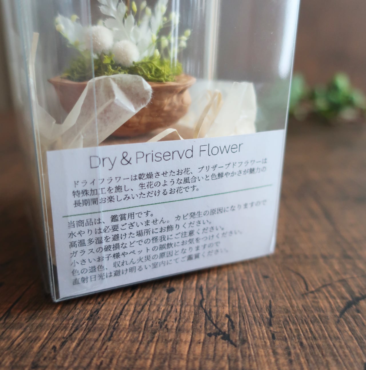 お手間要らずの小さなドライフラワーのテラリウムで、