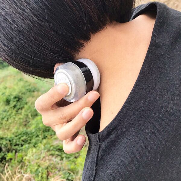 パフをポンポンと叩いて手首などにすり込みます。