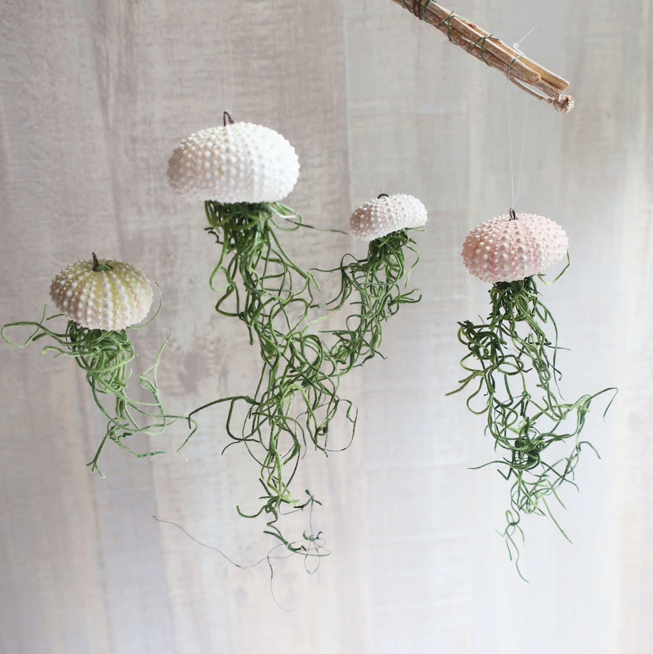 「プランツ 親子クラゲ」ウニ貝殻&プリザーブドのエアプランツ