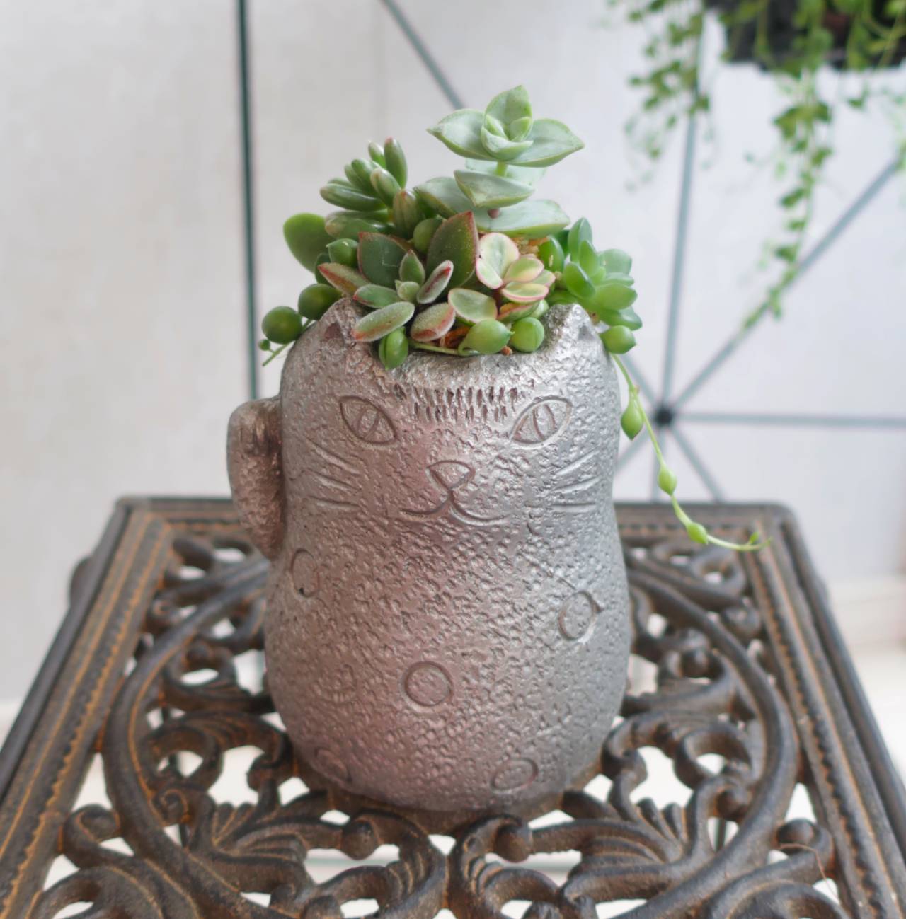 招き猫の多肉植物寄せ植え鉢(Mサイズ)